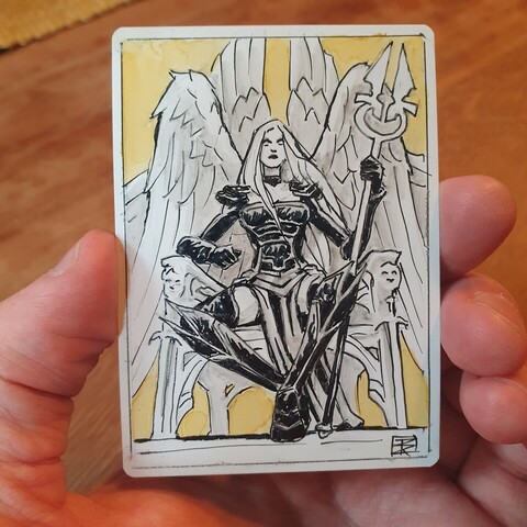 Court of Grace foil Artist Proof ink and marker sketch for a collector. Avacyn seated on the angelic throne in Court of Grace. #mtgart #MagicTheGathering #ArtistProof