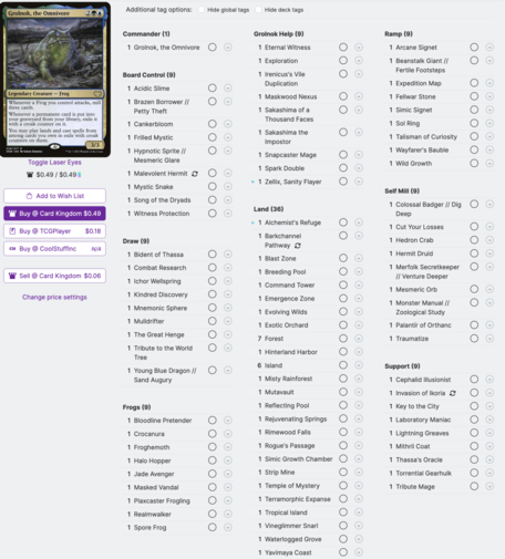 My Grolnok #mtgedh deck — back together in paper to make players at my LGS groan