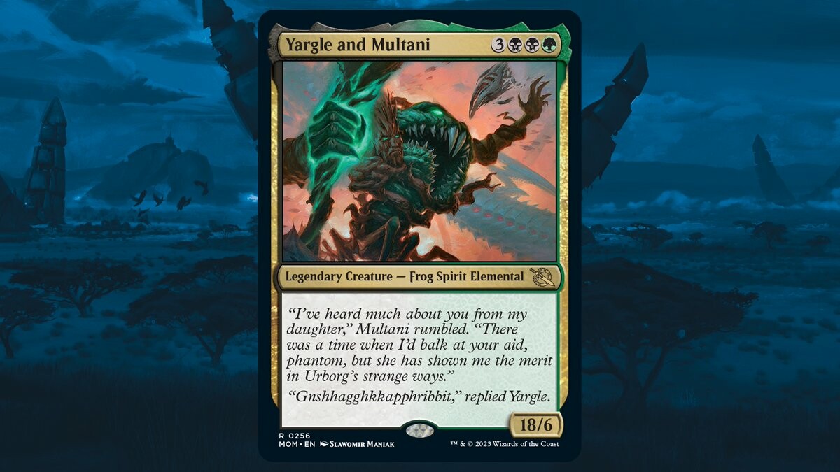 Here's my second Klingon-translated MTG card from March of the Machine: Yargle and Multani! This was fun as the body is just flavour text. Check the alt text if you can't read pIqaD 😉 #mtgmom #MTGMachine #klingon #tlhInganHol
