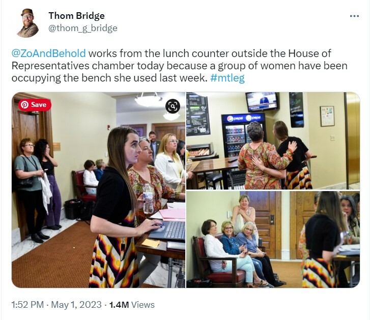 Today we deployed the #BlueBenchBrigade to make sure that @ZoAndBehold would be surrounded by kind people who support her and her work in the #mtleg https://twitter.com/kevhamm/status/1653136145730146304
