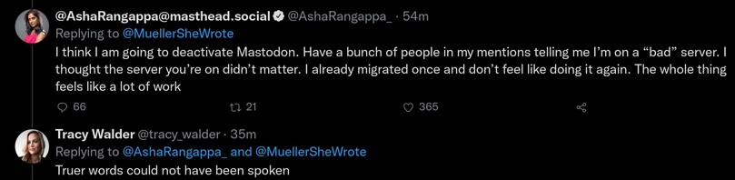 Looks like they gave up on #Mastodon. Sad. I really enjoyed them both. #MuellerSheWrote I'm indifferent on. But, who am I? Nobody.
