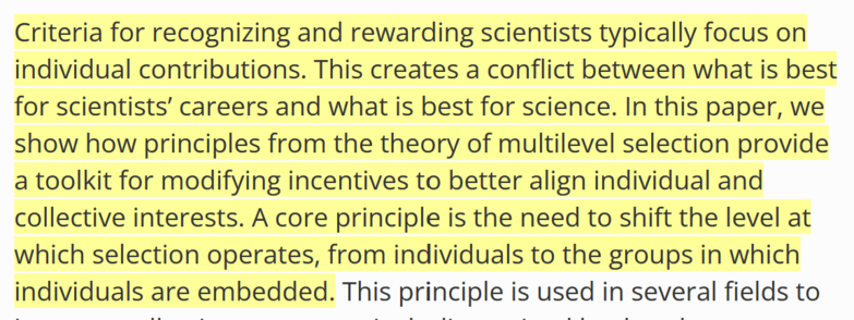 #incentives #collaboration #collectiveinterest #selection #multilevelselection #science