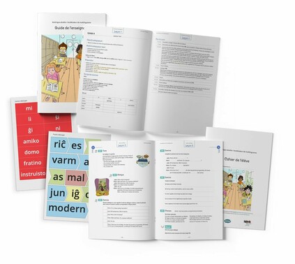 Matériel pédagogique complet, audio, cahier de l’élève, guide de l’enseignement https://mla.esperanto-france.org