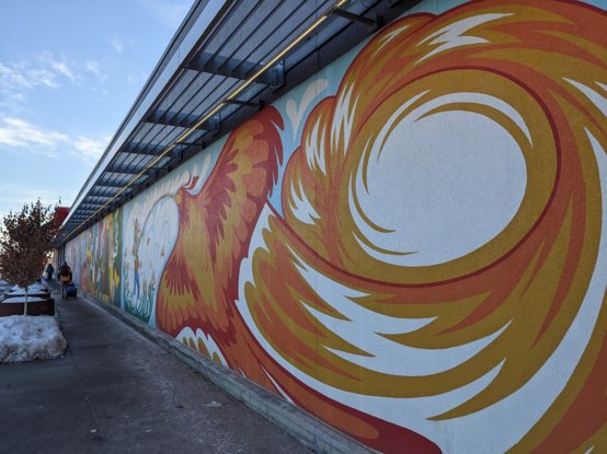 Phoenix mural, painted on the wall of the Lake Street Target in Minneapolis that burned during the George Floyd uprising. Artist unknown.