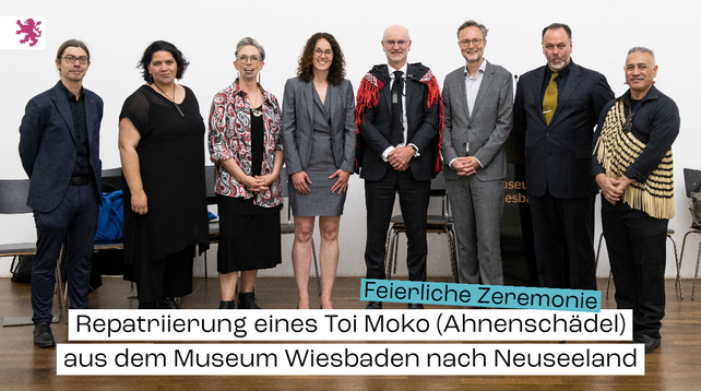 Aus einer naturkundlichen Sammlung aus dem 19. Jahrhundert befand sich im Bestand des #MuseumWiesbaden ein Toi Moko: ein tätowierter Ahnenschädel der neuseeländischen Māori. Um der Würde des Verstorbenen gerecht zu werden, wurde der Schädel am Mittwoch in einer feierlichen Zeremonie an eine Delegation im Rahmen eines neuseeländischen Repatriierungsprogramms am Te Papa Tongarewa Nationalmuseum in Wellington übergeben. https://hessenlink.de/hmwk2345
