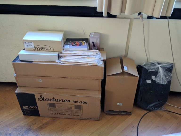 Nun konnten endlich dringend benötigte #Musikinstrumente angeschafft werden, die nun gesichtet und einrichtet werden...