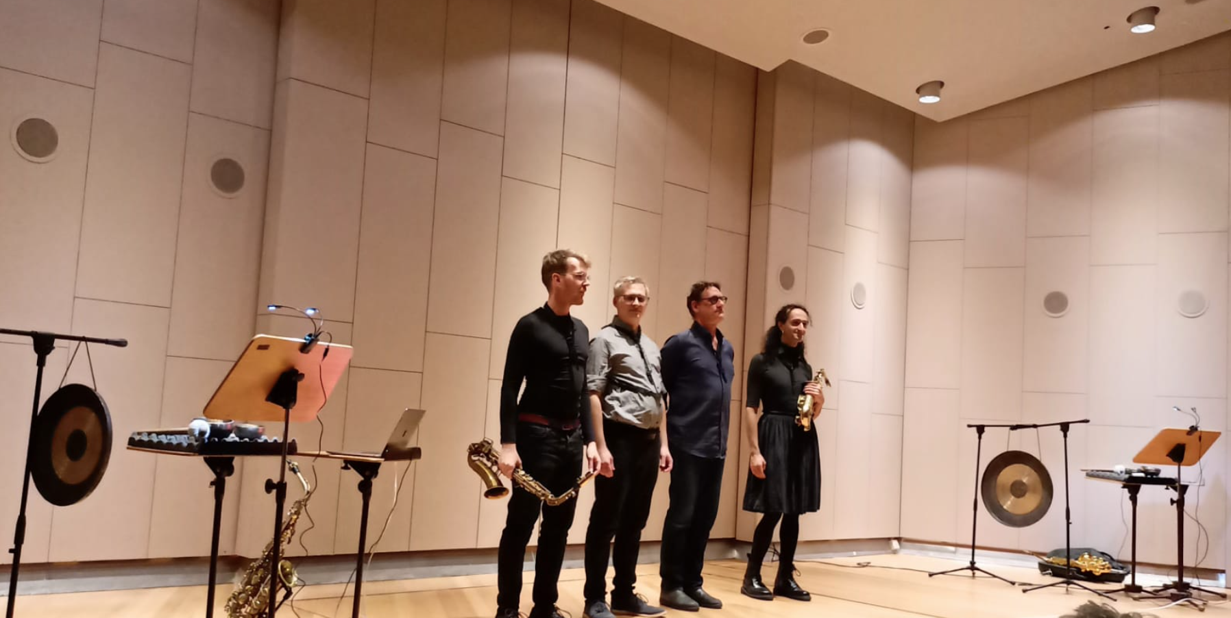 Das Florian Bergmann Quartett Fo[u]r Alto besteht aus 4 Altsaxophonen, die hier aber auch diverse Gongs und Klangschalen spielten. Schon eine solche Besetzung ist ungewöhnlich. Noch ungewöhnlicher war das Konzert. Ich wusste nicht, was alles für Geräusche man mit Saxophon machen kann... Ein sehr inspirierender Abend.