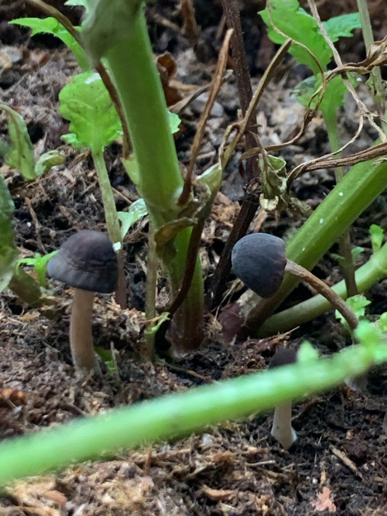 Anybody knows what these tiny black #mushrooms in my house plant (Moroccan mint) might be? #fungi #mycology