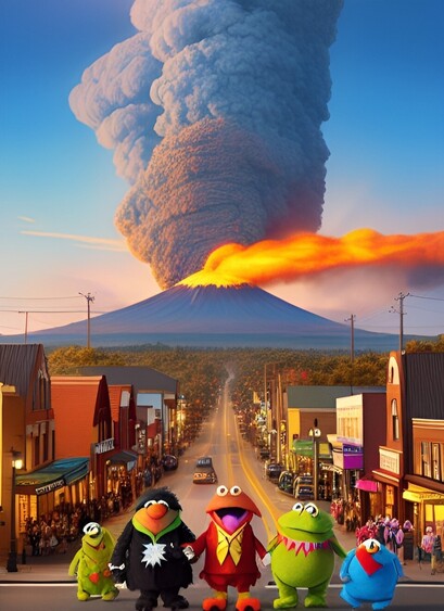 In my dreams last night: I was riding in a red SUV being driven by my nephew. The sky over Rapid City became suddenly full of very heavy, black and opaque smoke, and there was a phosphoric and sulphuric smell in the air. We thought a volcano was erupting. But we persisted in driving into town. We found the entire town's population had been replaced by muppet-like creatures, and they were living in my nephew's family's house. #MyDreamJournal #MuppetApocalypse