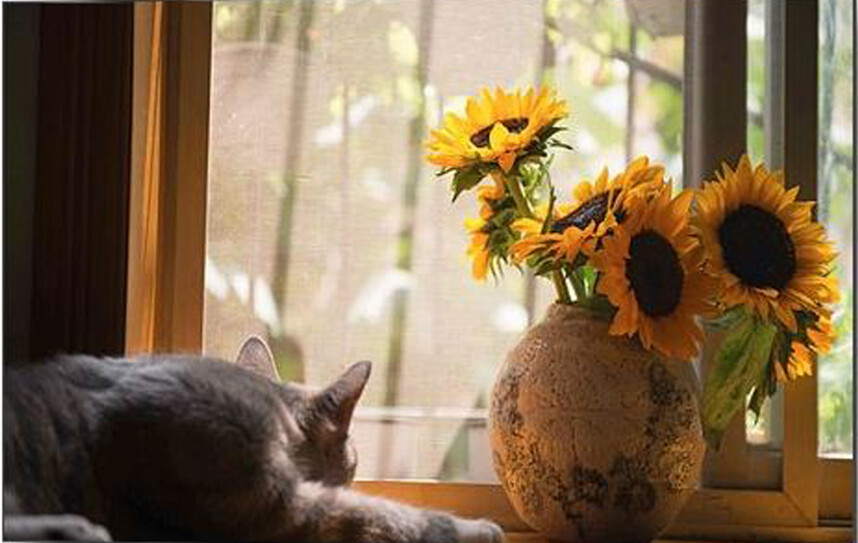 Available Here: https://sandi-oreilly.pixels.com/featured/cat-and-sunflowers-by-window-sandi-oreilly.html