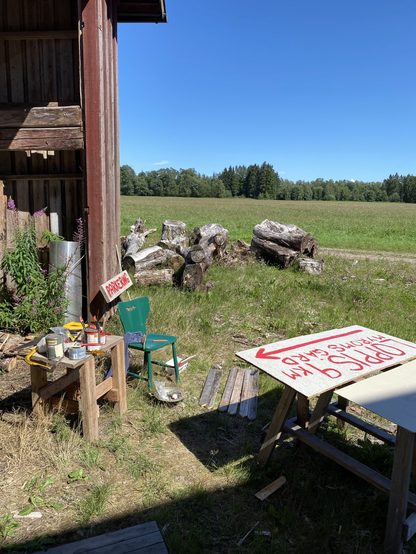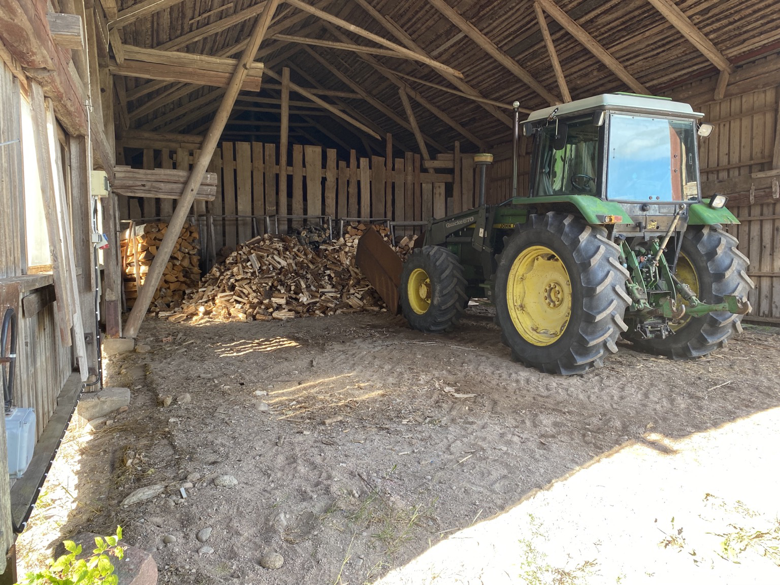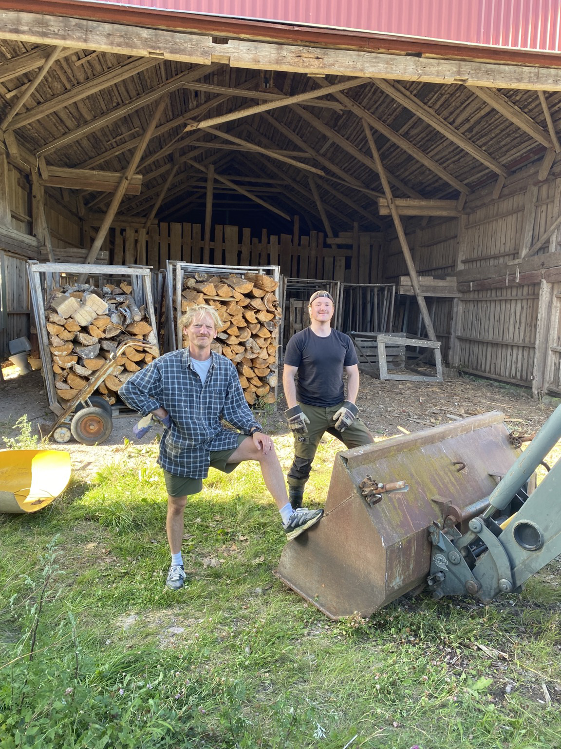 Dag 11. Idag va vi en lite mindre arbetsstyrka men vi gnetade på ändå. Jag och Viggo rensade ut bland de kvarvarande pallarna i stallets södra del och körde dem till plåthallen. Sen kopplade vi på vedmaskinen på traktorn. På eftermiddagen kom Anni och Linus på besök så efter lite fika började jag, Linus och Viggo klyva ved. Det gick undan att göra ved med en #superpilke , vi gjorde ca 3 m3 på en timma. Loppisen har rullat på som vanligt idag med mycket besök.