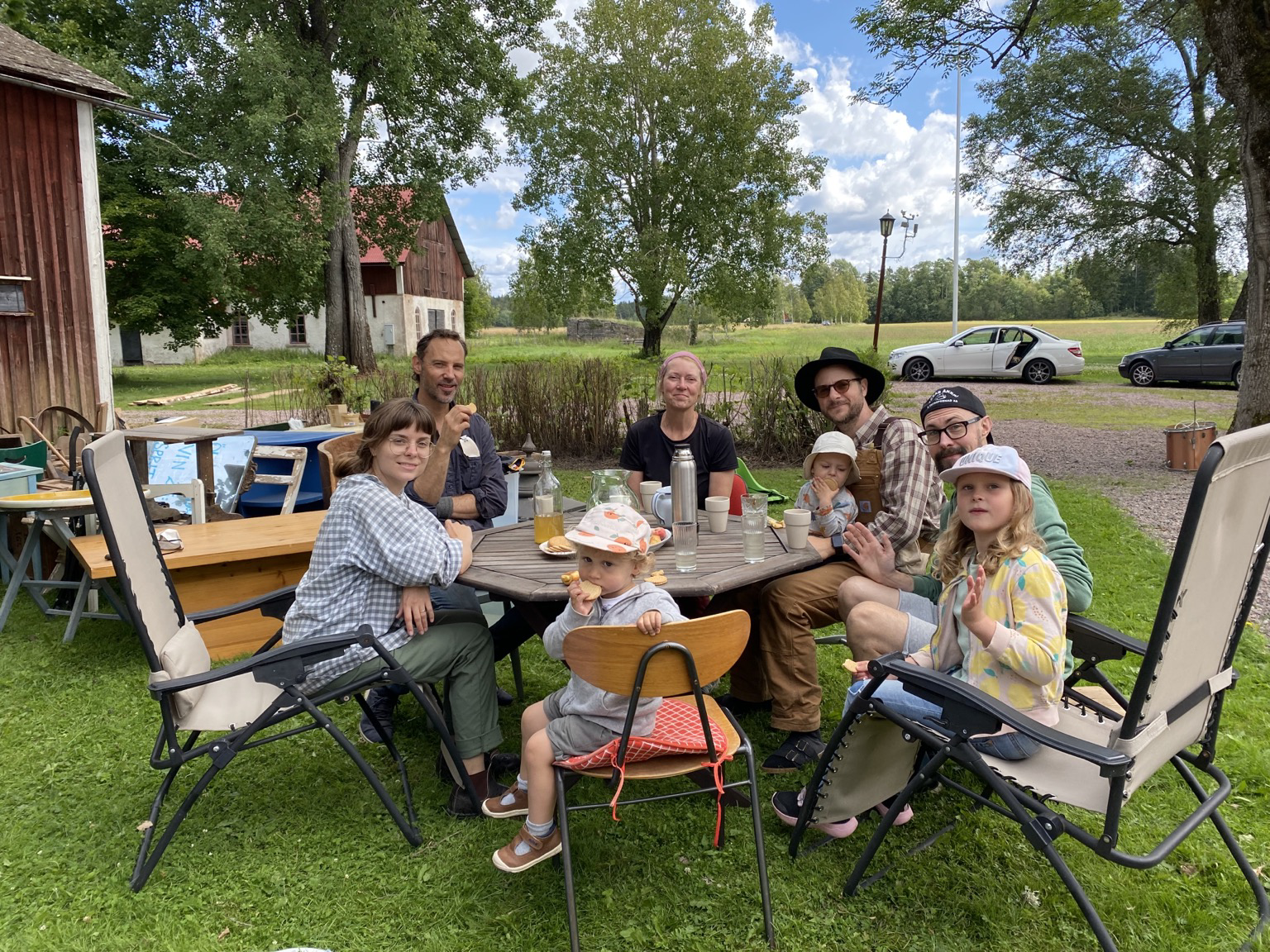 Då så, då va dag 12 avklarad. Idag har vi fortsatt med veden. Totalt gjorde vi 7 skopor á 1,5 m3. Så ca 10 m3 ved har vi gjort och det borde vi klara oss på ett tag. Vi ska ju bara ha för besked då vi har jordvärme för uppvärmning och varmvatten. Utöver det så har loppisen varit öppen och mycket folk har varit här. På kvällen kom Emelie och Jakob med barn på besök så då tände vi grillen och bjöd på mat.