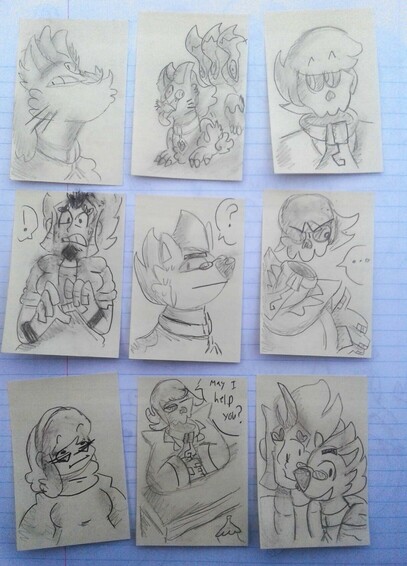 Doodles of various Mystery Skulls characters I did in school yesterday!