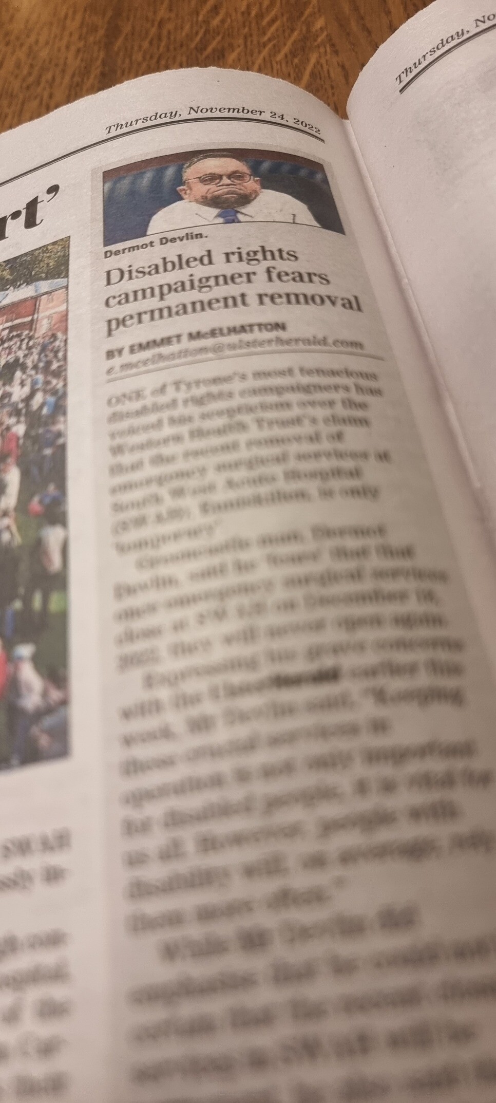 Today I spoke to the Ulster Herald about the temporary removal of emergency surgeries from South West Acute Hospital (SWAH) in Enniskillen.