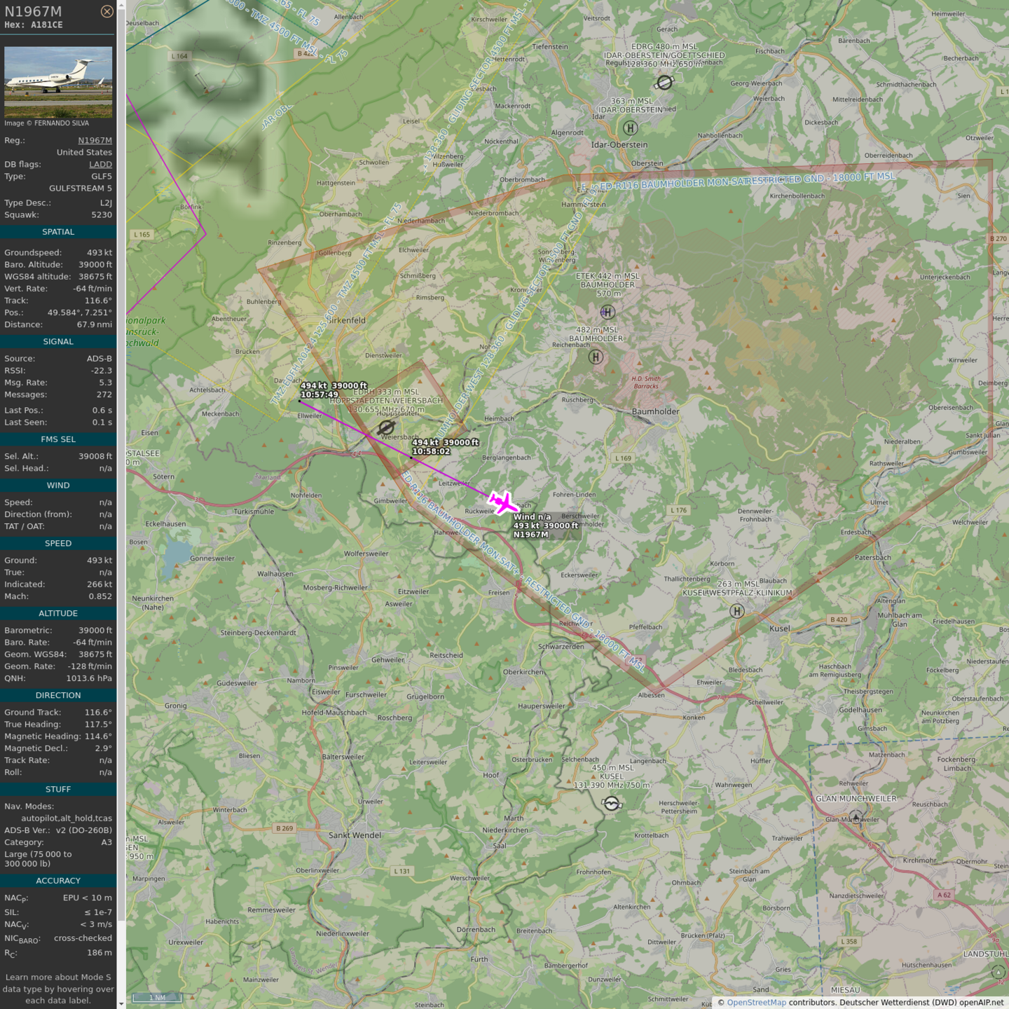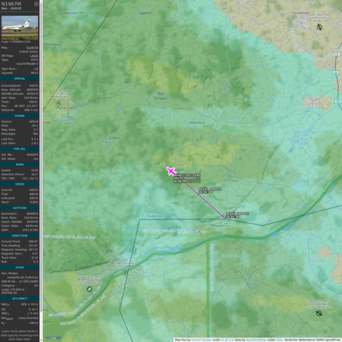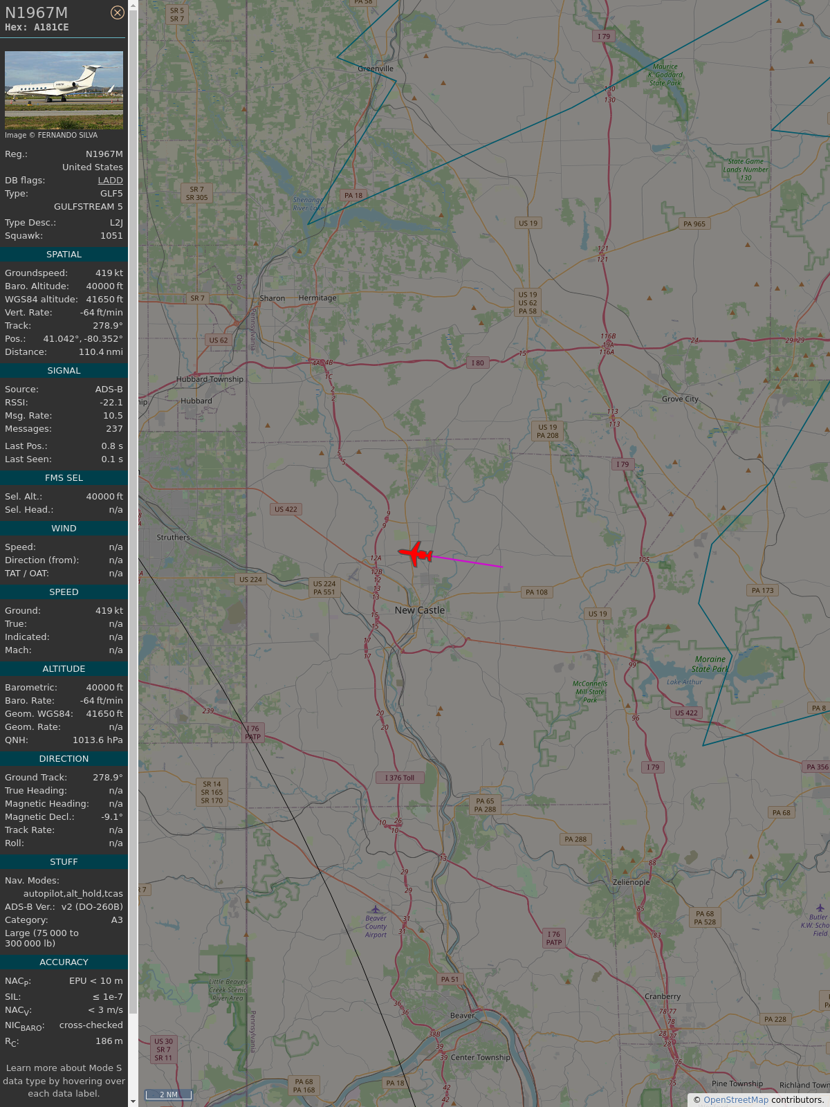 #N1967M G550 McDonalds Corp: 40000 ft and 73.4° frm hrzn, heading W @ 10:00:14 - https://globe.adsb.fi/?icao=A181CE #WayTheHeckUpThere #adsb #AnyFlightTracker #rtmladsb #Bellevue Photo by: FERNANDO SILVA @ Planespotters.net