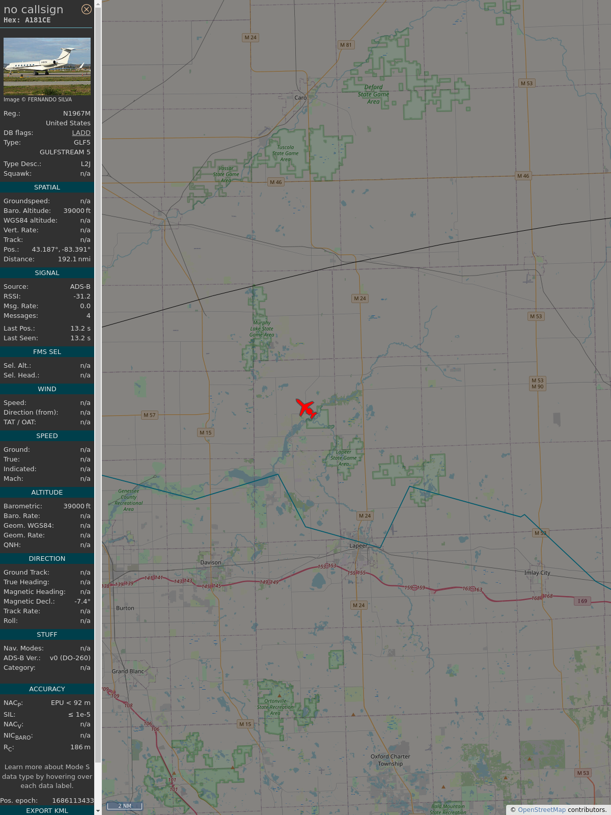 https://globe.adsbexchange.com/?icao=A181CE&showTrace=2023-05-30&zoom=7&lat=42.16699&lon=-83.78136×tamp=1685480087