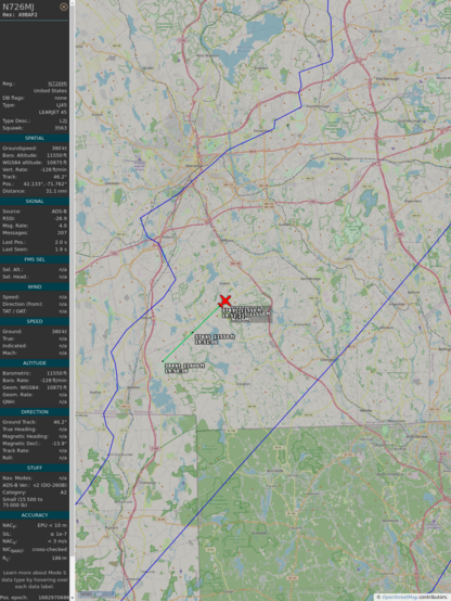 #PlaneAlert ICAO: #A9BAF2 Tail: #N726MJ Flt: #N726MJ