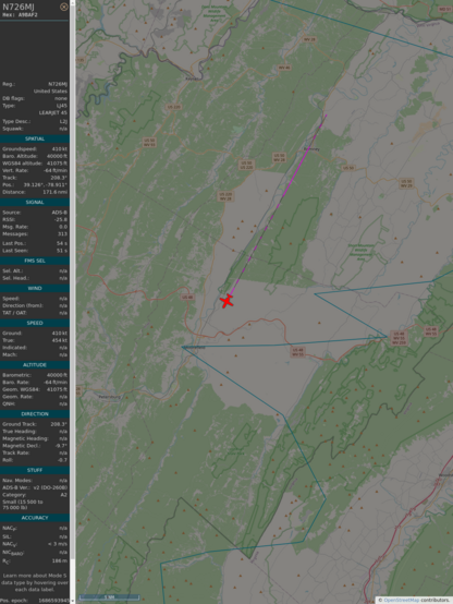 #PlaneAlert ICAO: #A9BAF2 Tail: #N726MJ Flt: #N452MP