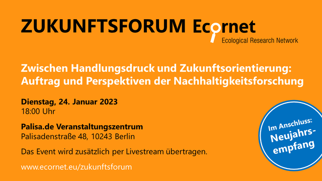 Anmeldung geöffnet für das 11. #Zukunftsforum Ecornet am 24.01.! Was sind der Auftrag und die Perspektiven für die #Nachhaltigkeitsforschung in den nächsten Jahren?
