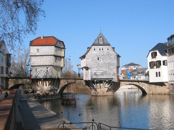 Die „Alte Brücke“ in #BadKreuznach wartet mit einer Besonderheit auf: Auf ihr stehen mehrere Brückenhäuser, erbaut 1595-1612, im 19.Jh. tlw. umgebaut. Vorgängerbauten werden spätestens 1495 erwähnt. Die #Brücke selbst wurde um 1300 erbaut, der nördliche Teil nach Kriegszerstörungen 1955 anders wiedererrichtet. Sie verbindet Altstadt und Neustadt über die #Nahe hinweg, wobei die Neustadt heute als Altstadt bezeichnet wird, da dieser Teil historischer wirkt, als die eigentliche Altstadt.