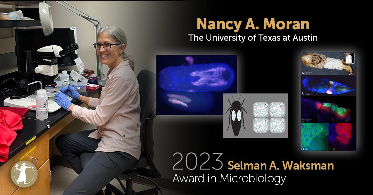 We are honoring #NASmember Nancy A. Moran of @TexasScience@twitter.com with the 2023 Selman A. Waksman Award in Microbiology for expanding understanding of microbial symbiosis! Learn about her contributions: http://bit.ly/3J9a4nr #NASaward #Microbiology