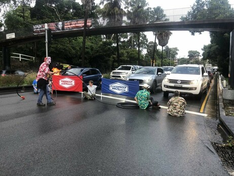 Scomo the April Fool blocks busy highway in his own electorate - failing his constituents on lack of climate action and bushfire prevention. The joke’s on us. #fireproofaustralia #auspol #nationalemergency press release here: https://mailchi.mp/5484af8b512b/scomo-the-april-foolscomo-blocksmajorhighway-holding-hose