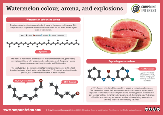 It's #NationalWatermelonDay β learn more about the colour and aroma of watermelons, and what can make them explode, with this graphic: https://wp.me/p4aPLT-1ft