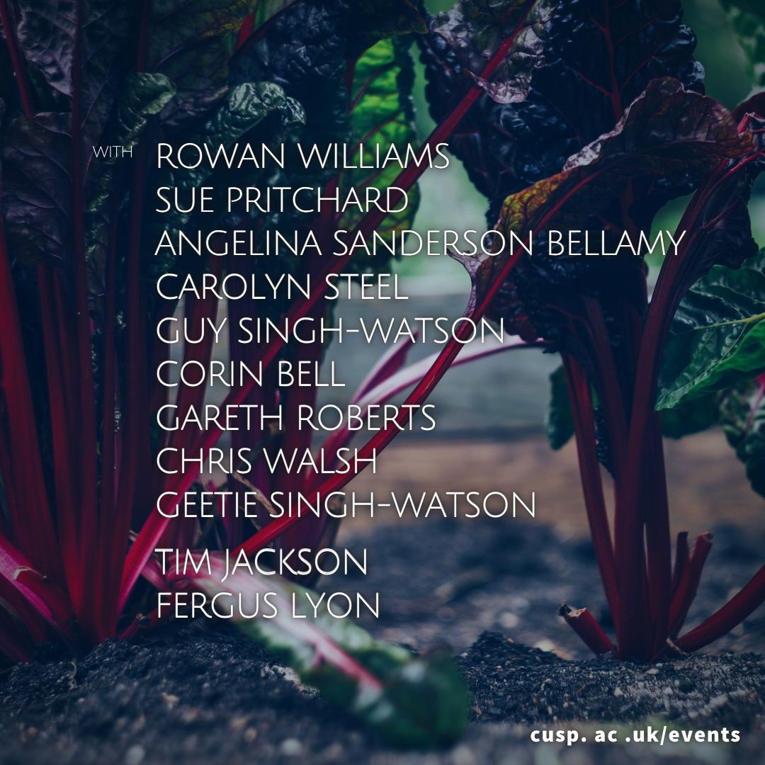 Speakers include Rowan Williams, @suepritch, Angelina Sanderson Bellamy, Carolyn Steel, Guy Singh-Watson, Corin Bell, Chris Walsh and Geetie Singh-Watson.