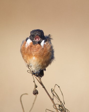 Hello Masodon, I'm here to prevent a deficiency of birds. Here's the first one - a Stonechat (Saxicola rubicola) shouting furiously at me. Enjoy!