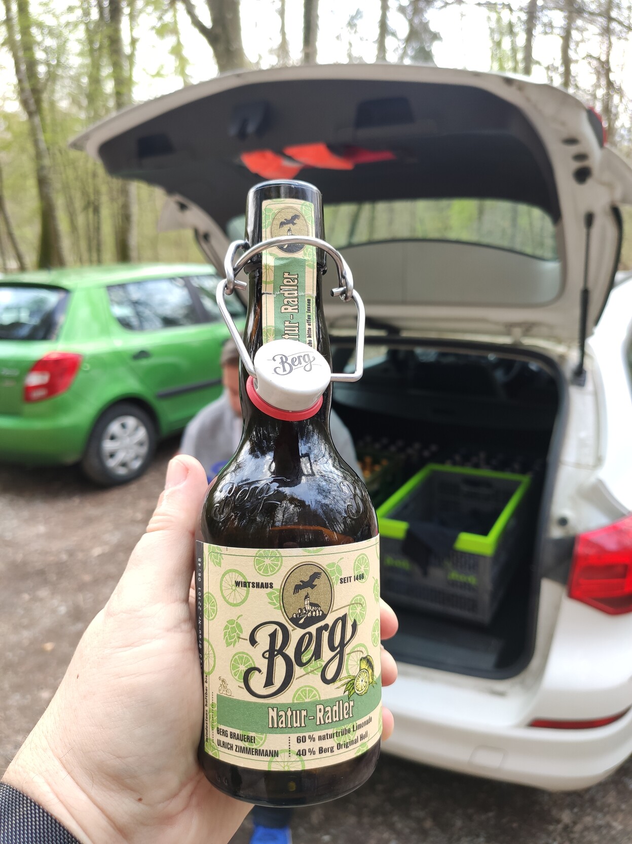 Schon nicht schlecht, wenn du bereits vor dem Waldspaziergang Getränke geholt hast und die noch im Kofferraum sind 🍻