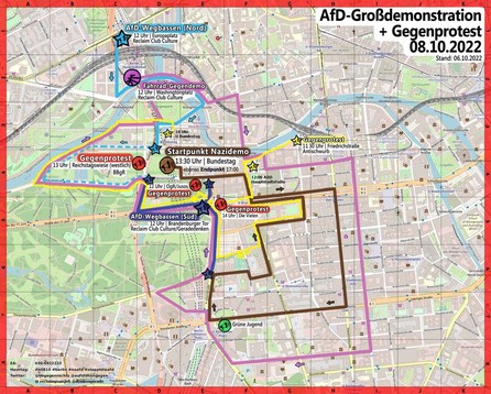 Anbei eine Übersicht zu den #afdwegbassen Routen und weiteren Gegenprotesten.