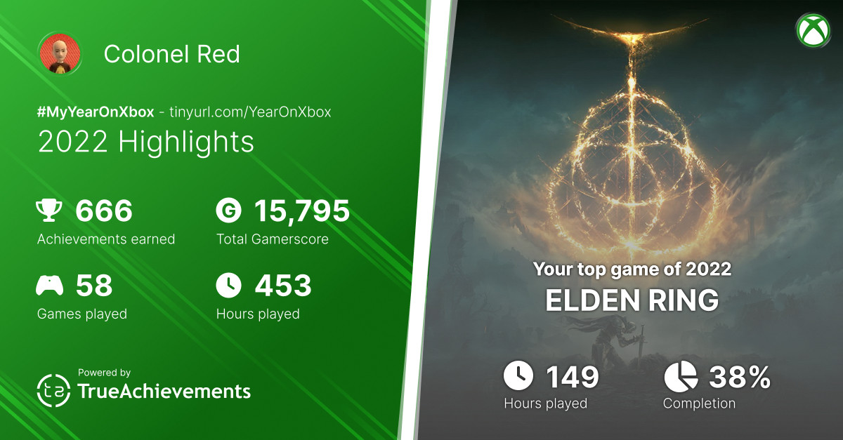 A relatively slow year on #Xbox for GamerScore. Should break 400K in 2023, though. #NerdGaming