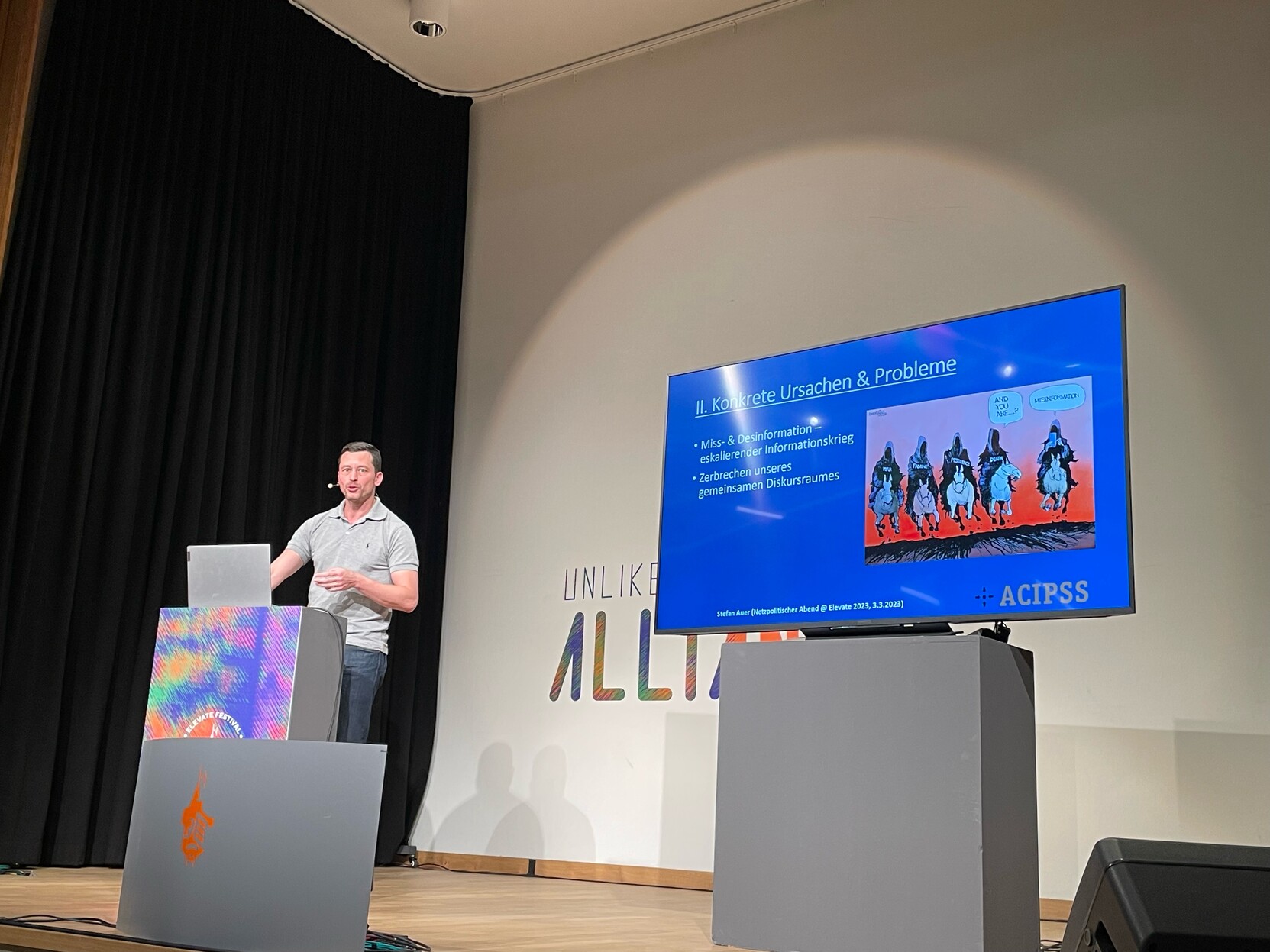 Der 3. Vortrag kommt von Stefan Auer vom @ACIPSS_Graz : "Desinformationswelten – Zum Ende der geteilten Wahrheiten"