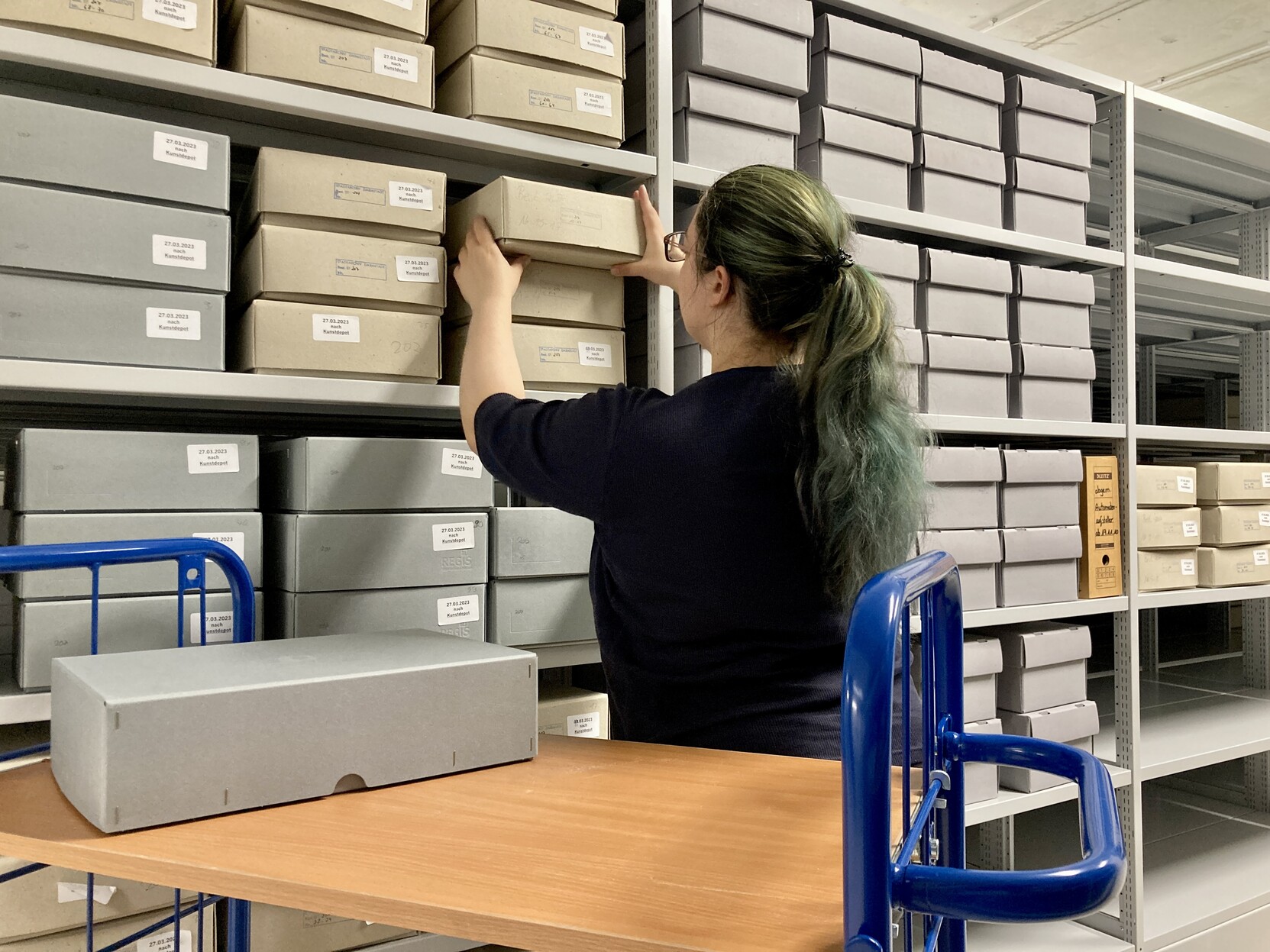 Was umzieht, will auch eingeräumt werden. Heute haben wir uns im #NeubauKunstdepot #Darmstadt u.a. den Personalakten gewidmet. Was vorher an 2 Standorten auf 5 Lagerplätze verteilt war, findet nun eine neue gemeinsame Heimat.