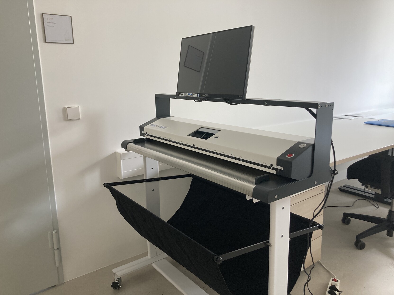 Die Ausstattung im #NeubauKunstdepot hat Zuwachs bekommen: einen neuen Durchlaufscanner für Großformate 👍🏻Damit können wir im neuen Gebäude jetzt u.a. Pläne, Plakate und Karten schnell, schonend und mit der jeweils notwendigen Qualität digitalisieren.