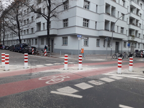 Mich haben ,als ich dort in die "angebliche Fahrradstraße" ( 2Richtungen Rad, mit entgegenkommender MIV -Einbahnstraße und Stehblech auf beiden Seiten)- hineinfuhr, zwei MIVs entgegen der Einbahnstraße überholt.... 😱 😱 👹