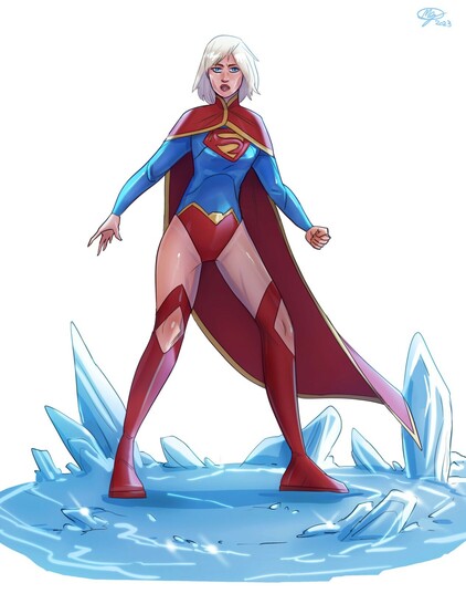 new 52 supergirl. I know folks had mixed feeling about this look, but I liked it. the cape around the collar with the gold trim, the hair, the boots, though I can see how the lower half of the suit is a bit odd haha. regardless, I liked it. :)