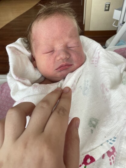 My new small family member arrived yesterday. She has great hair and strong opinions. #newbaby