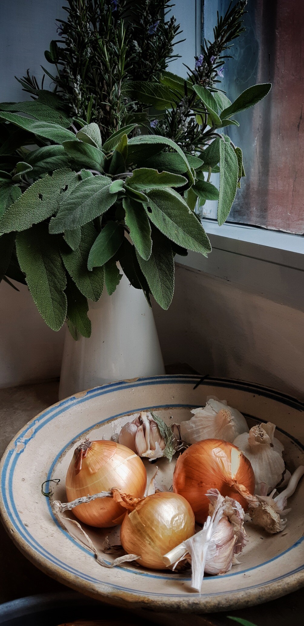 Onions and sage still life