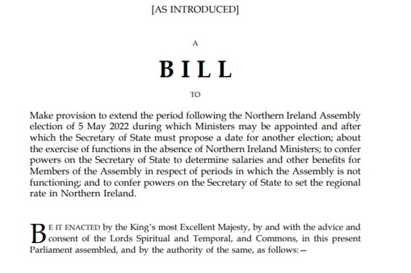 The Northern Ireland (Executive Formation etc) Bill has just been published: https://bills.parliament.uk/bills/3377
