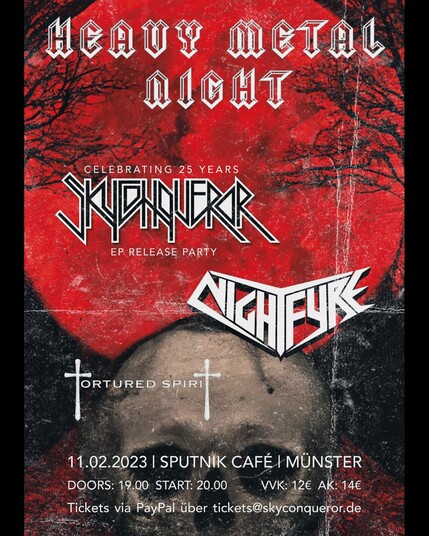 So grab your tickets for February 11th of 2023 in advance before there are none left! Tickets are available for €12,- in advance, €14,- at the entrance. Either send the money via PayPal to tickets@skyconqueror.de or buy via https://skyconqueror.bandcamp.com/merch/25-years-skyconqueror-live