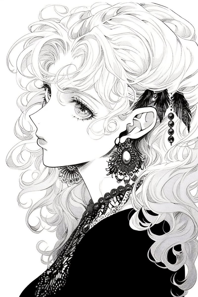 黑白漫画20。#nijijourney5 #AI #AICG #AIArtwork 提示词80年代少女漫画,圆笔。头发的感觉比较接近了,但脸的画法不对,传统少女漫也比较少见这种大面积涂黑…