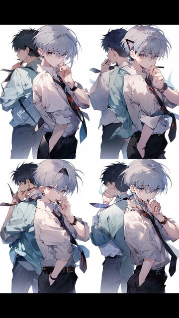 把俩男角色凑一块儿好容易出图了,可是这……艹… #nijijourney5 #AI #AICG #AIart #AIArtwork
