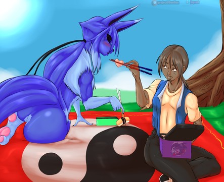 #happyvalentinesday #valentinesday #valentines #interracial #fox #ninetails #ninja #shinobi #couple #pairing #relationship #human #werewolf #wolf #art #artwork #original #originalart #originalcharacter #comic #comicart #outdoors #food