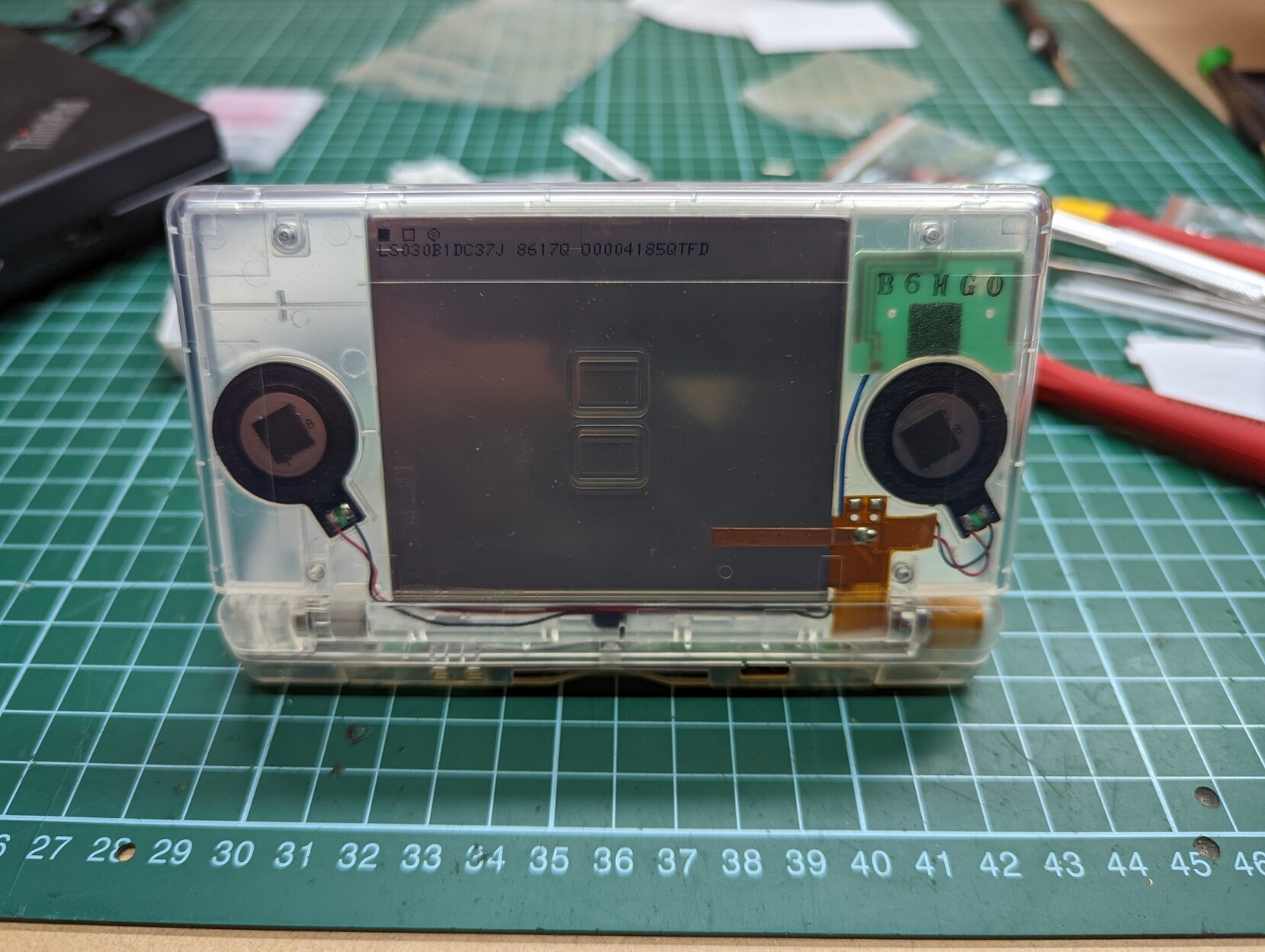 Did my first #NintendoDSLite case swap. Internals were provided from a crusty unit of eBay with a broken hinge etc. Took a few goes getting the top screen flex pcb connector correctly oriented and seated. Considering whether to add #usbc to the battery next.