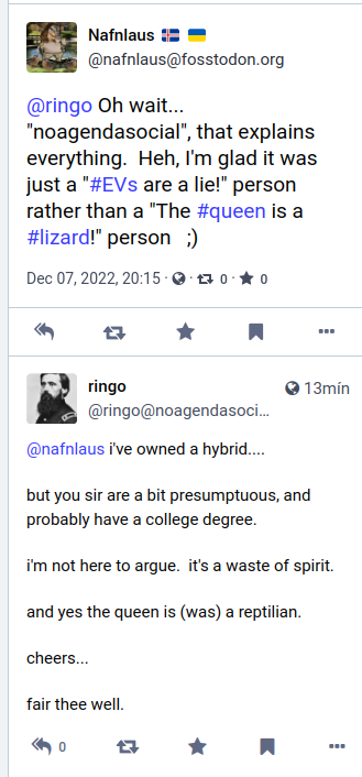 I don't know whether to block #NoAgendaSocial or keep them around as comedy...