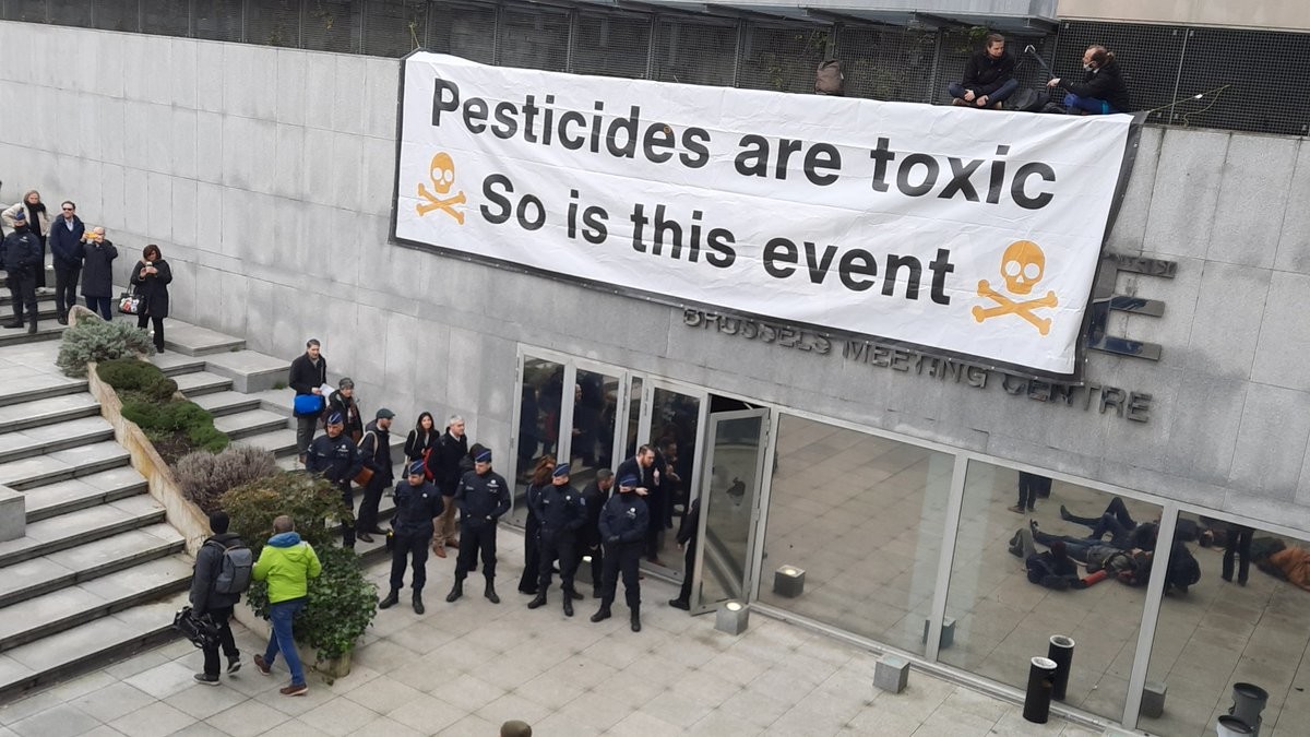 ACTION EN COURS : des activistes bloquent actuellement le Forum pour le futur de l'agriculture (FFA) pour dĂ©noncer une vaste opĂ©ration de lobbying et de greenwashing de lâagrobusiness.  #NoFFA #NoFutureForAgrobusiness #NoFutureForAgrotoxics