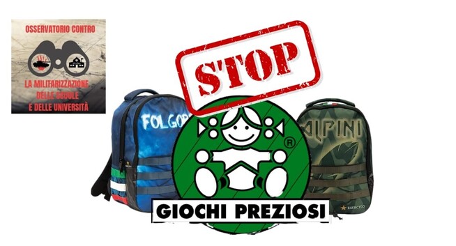 "Gli zainetti scolastici alla moda sono un piccolo passo per gli scolari e un grande passo per l’industria militare che coltiva così le guerre di domani."