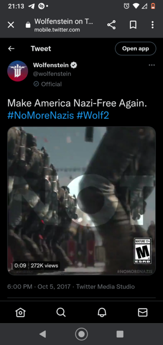 As we reel from seeing a former president hobnob with an anti-Semitite and a sexist, racist, homophobic White Nationalist (source: not needed, he said it himself), let us be reminded of the original reaction to his Nazi-courting bullshit from a fantastic games company. #NoMoreNazis #politics #games #wolfenstein #charlottesville