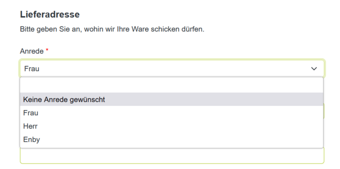 Passend zur #NonbinaryAwarenessWeek bei genialokal.de gibts die Möglichkeit #Enby als Anrede auszuwählen.